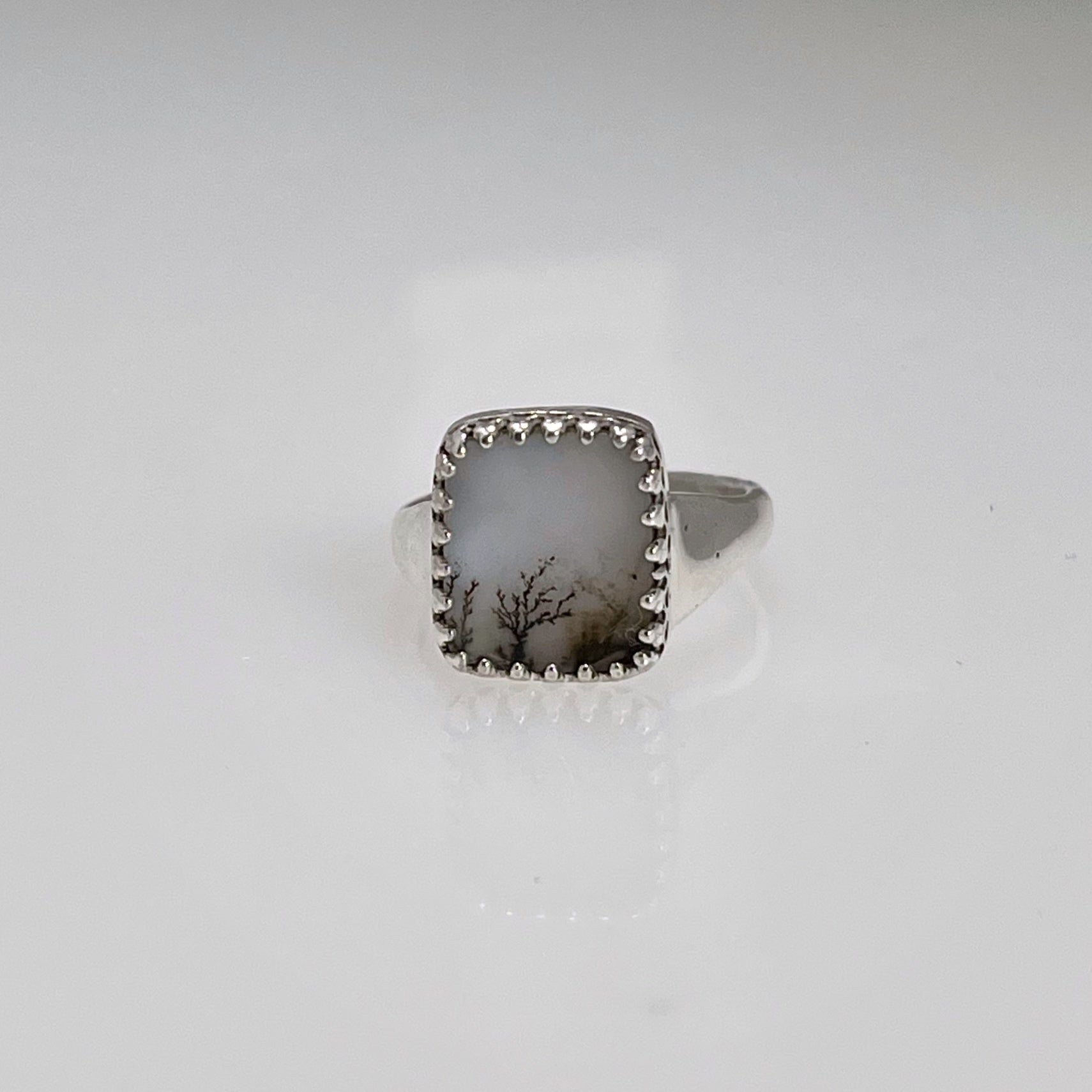 White Tree Dendritic Agate Ring (One of a Kind)